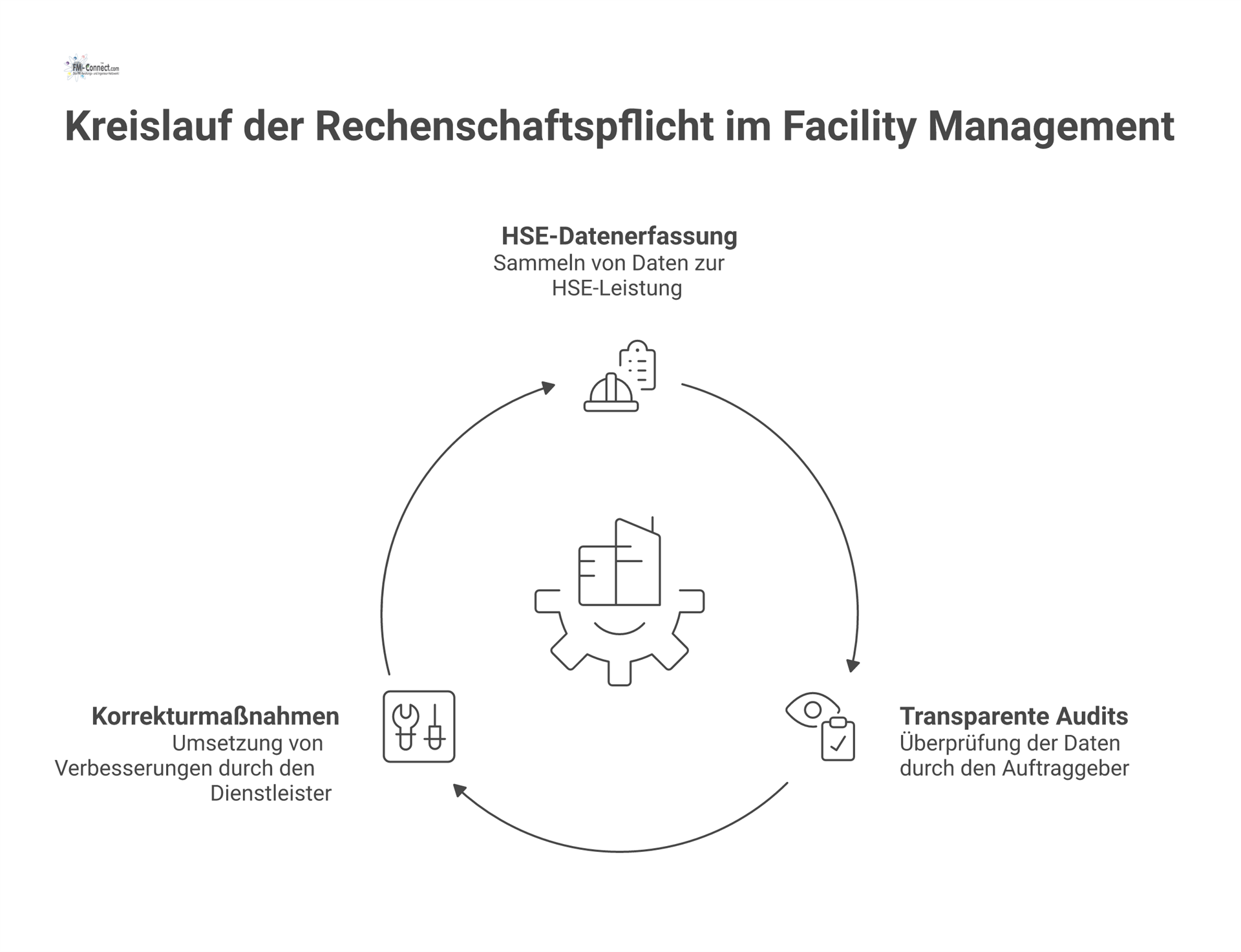 Darüber hinaus erlaubt eine konsequente HSE-Datenbasis die Einführung messbarer Leistungskennzahlen (KPI) im Vertrag. Bereits im Rahmen der Ausschreibung können klare Indikatoren definiert werden – etwa die Anzahl meldepflichtiger Arbeitsunfälle, das Einhalten bestimmter Prüfintervalle oder die Reduktion des Energieverbrauchs um einen festgelegten Prozentsatz. Diese Kennzahlen fließen später in die Service-Level-Agreements (SLAs) ein und dienen der kontinuierlichen Überwachung der Vertragserfüllung. Der HSE-Ansatz stellt sicher, dass Abweichungen von den Soll-Vorgaben schnell erkannt werden: Sollten beispielsweise vermehrt Vorfälle oder Beinaheunfälle gemeldet werden, greifen definierte Korrekturmaßnahmen. Der Dienstleister ist verpflichtet, für Abhilfe zu sorgen, Schulungen nachzubessern oder Prozesse zu optimieren. Alle Anpassungen und Verbesserungen werden dokumentiert, sodass Fortschritte belegbar sind. Diese Kultur der Rechenschaftspflicht erhöht nicht nur die Sicherheit, sondern ermöglicht es dem Auftraggeber auch, die Leistung des Dienstleisters objektiv zu bewerten. Im Ergebnis führt die Auditierbarkeit zu einem kontinuierlichen Verbesserungsprozess: HSE-Dokumentation und -Berichte schaffen Vertrauen, dass das Facility Management den hohen Ansprüchen gerecht wird und dass es einen transparenten Mechanismus gibt, um Qualität und Sicherheit über die gesamte Vertragslaufzeit sicherzustellen.