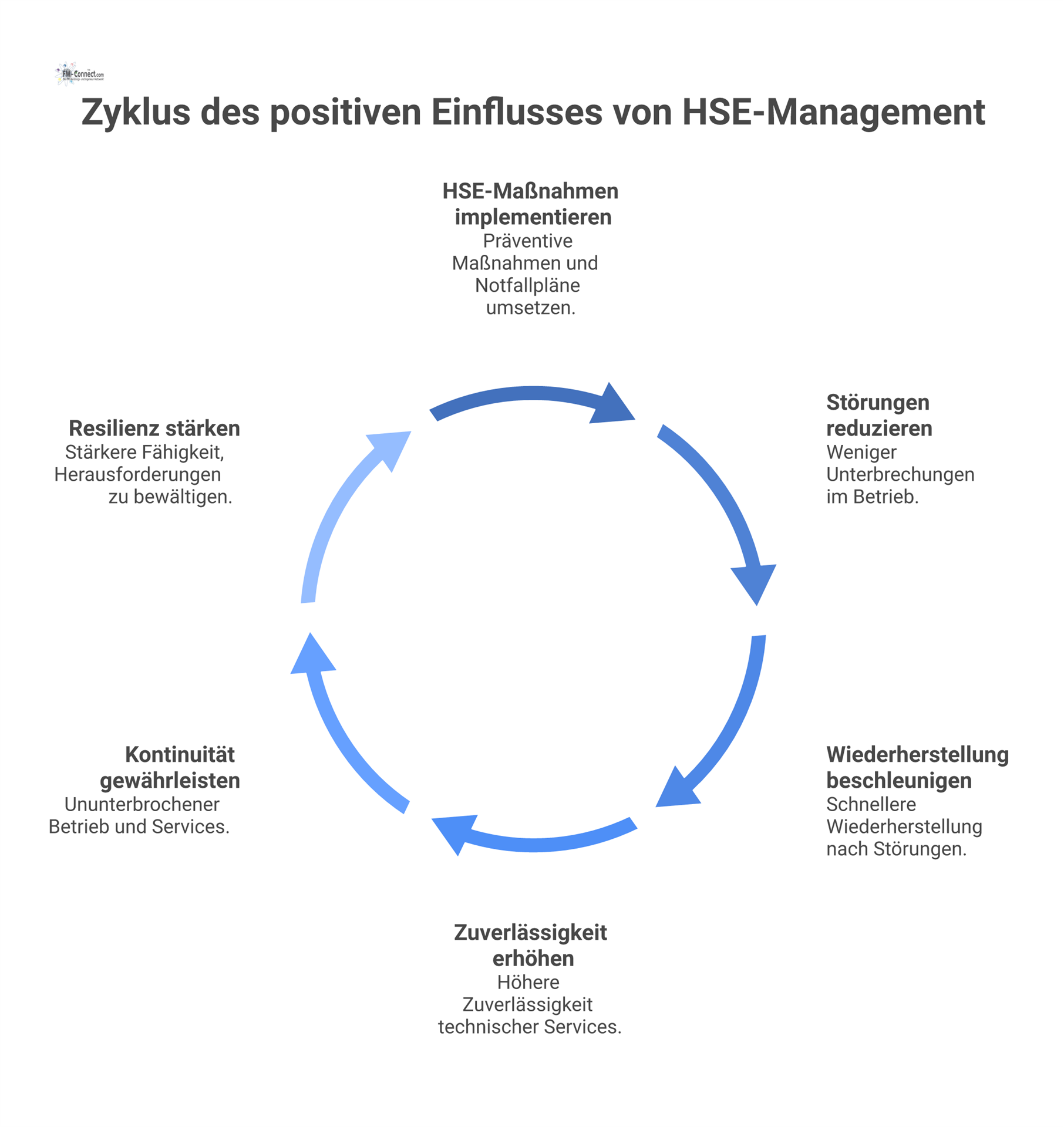 Fazit: Die aufgeführten Punkte verdeutlichen, dass ein hoher Stellenwert von Gesundheits-, Sicherheits- und Umweltaspekten im technischen Facility Management für Industriegebäude nicht nur der Erfüllung von Auflagen dient, sondern handfeste betriebliche Vorteile mit sich bringt. Von der Verhütung von Unfällen über die Rechtssicherheit und Nachhaltigkeit bis hin zur Sicherstellung eines störungsfreien Betriebsablaufs – HSE-Konzepte bilden das Rückgrat einer erfolgreichen technischen Betriebsführung. Daher sollten HSE-Anforderungen bereits im Ausschreibungsprozess klar definiert und vom zukünftigen Dienstleister vertraglich zugesichert werden. Auf diese Weise wird sichergestellt, dass der gewählte FM-Partner den hohen Ansprüchen an Arbeitssicherheit und Umweltschutz gerecht wird und der Industriestandort langfristig sicher, rechtskonform und effizient betrieben werden kann.