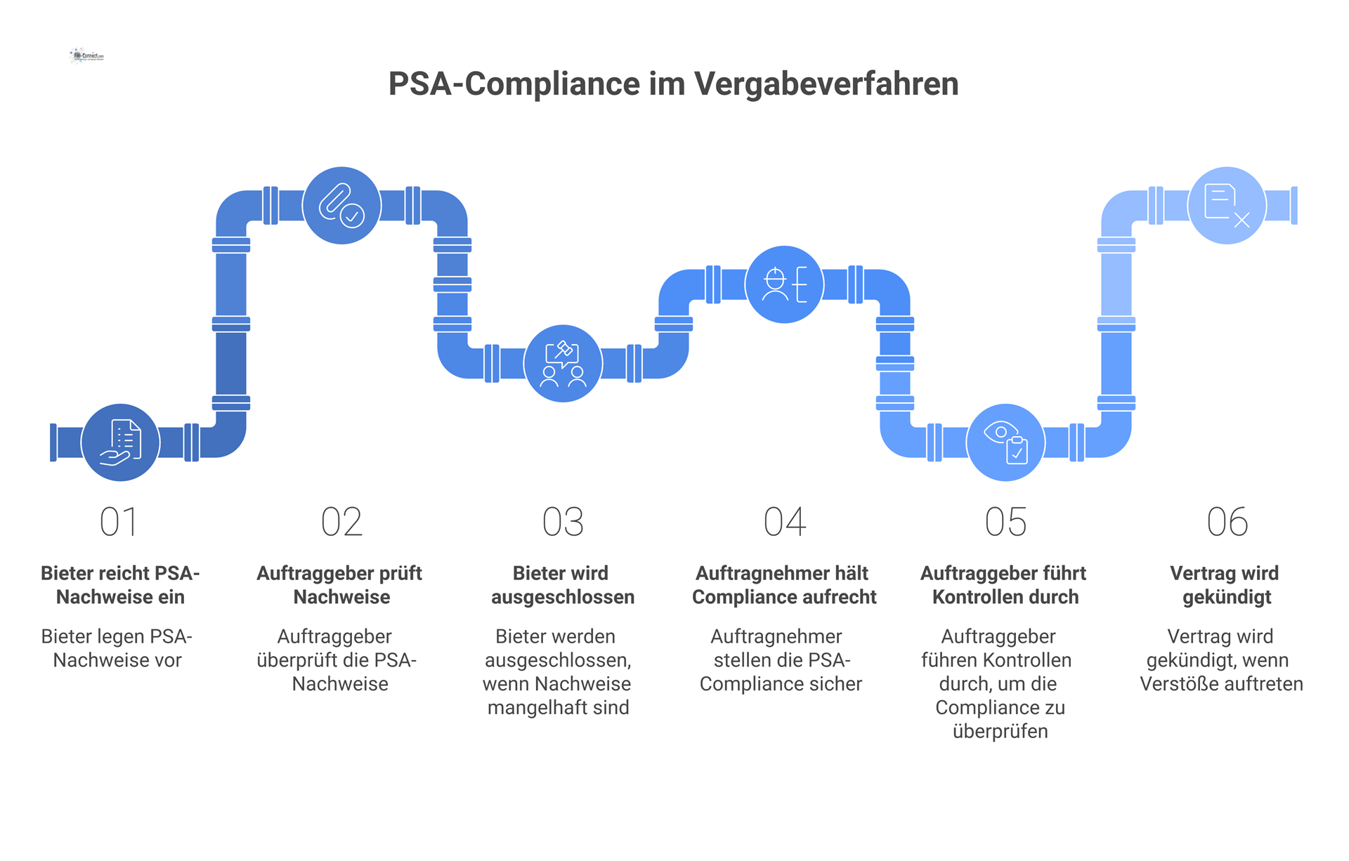 Die Ausschreibungsunterlagen müssen klar vorgeben, dass die oben genannten PSA-Nachweise mit dem Angebot einzureichen sind. Jeder Bieter hat alle geforderten Zertifikate und Dokumente vollständig und fristgerecht vorzulegen, damit bereits im Wertungsverfahren die Eignung in Hinblick auf Arbeitsschutz geprüft werden kann.