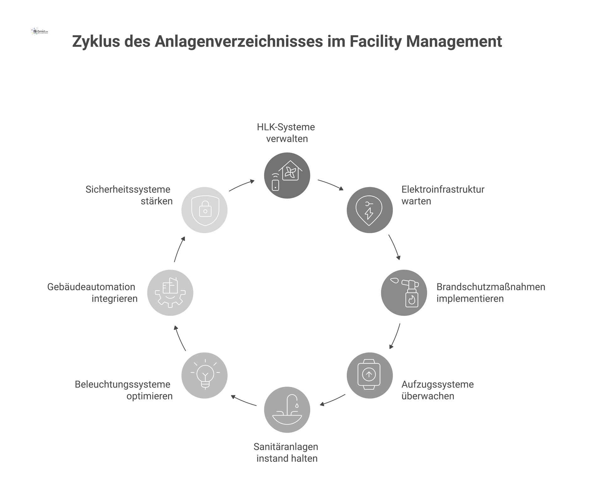 Das Anlagenverzeichnis im technischen Facility Management soll umfassend sein und sämtliche technischen Systeme der Liegenschaft abdecken, die dem Leistungsumfang des FM-Vertrags unterfallen. Dazu zählen unter anderem folgende Anlagenkategorien: