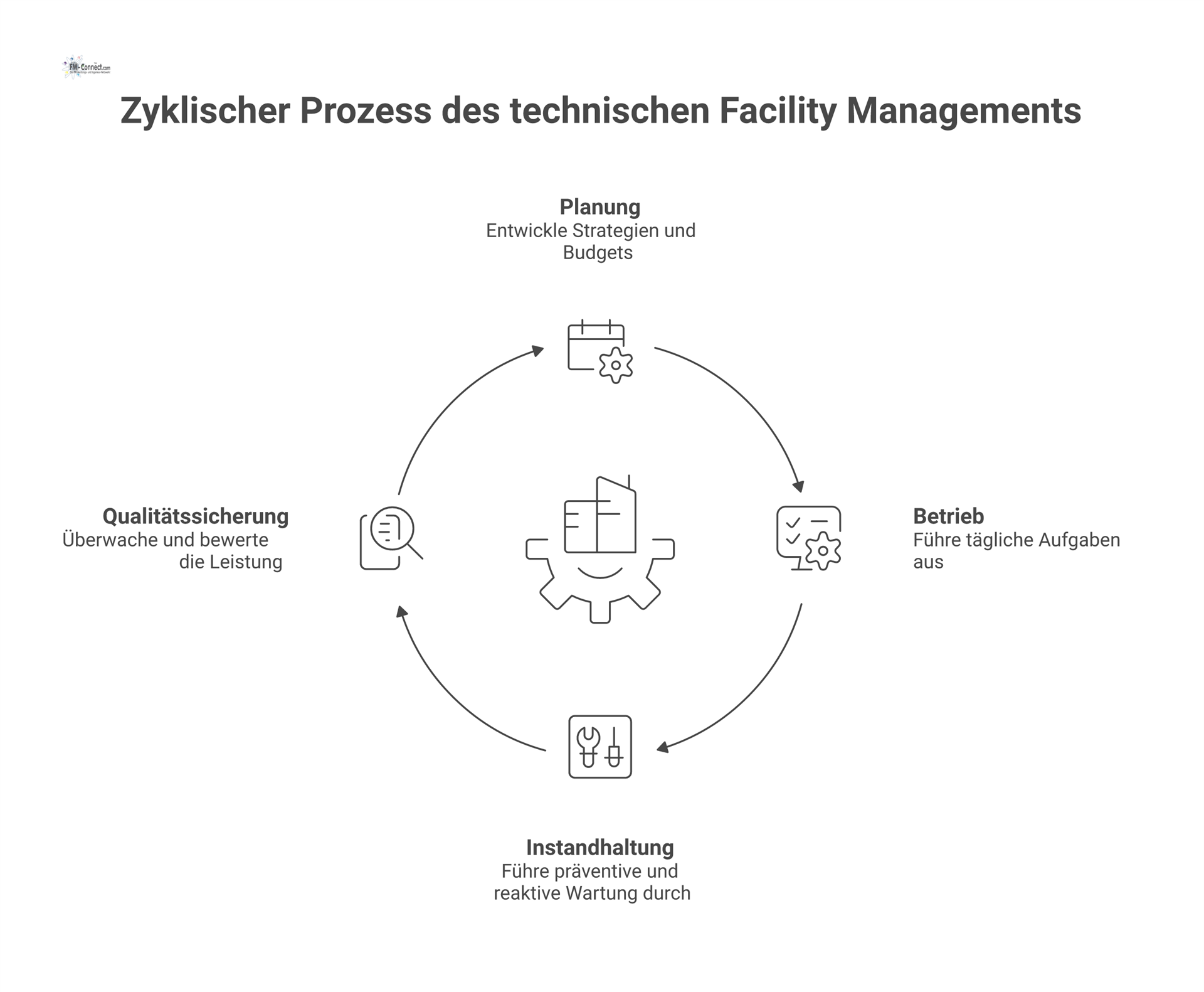 Im Prozesshandbuch sind alle wesentlichen Abläufe des technischen Facility Managements abgebildet, um einen reibungslosen Betriebsprozess sicherzustellen. Die Kernprozesse umfassen Planung, Betrieb, Instandhaltung sowie Qualitätskontrolle. Nachfolgend werden die zentralen Prozesse und ihre Ausgestaltung beschrieben, einschließlich der Schnittstellen zum Auftraggeber, zu Nachunternehmern und zu internen Stellen: