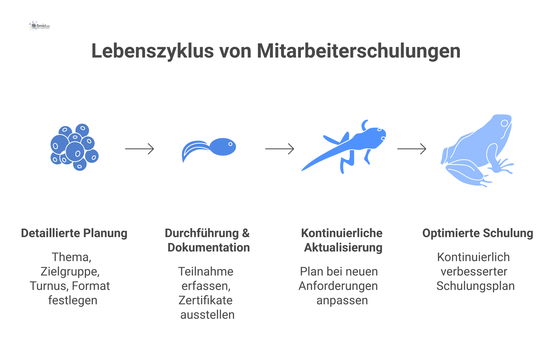 Diese detaillierte Planung stellt sicher, dass Ablauf und Umfang der Mitarbeiterschulungen transparent sind und allen Beteiligten frühzeitig bekannt gemacht werden. Der Schulungsplan kann dem Auftraggeber auf Wunsch vorgelegt und zu Vertragsbeginn gemeinsam abgestimmt werden.
