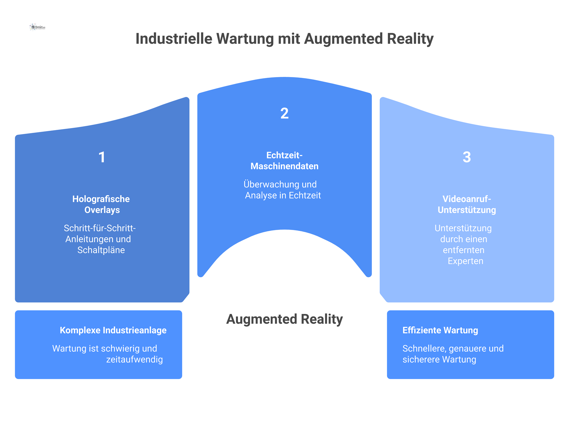 Einsatz von AR zur Unterstützung von Wartungs- und Reparaturarbeiten, indem Techniker virtuelle Anleitungen und Echtzeit-Informationen über ihre AR-Brillen erhalten