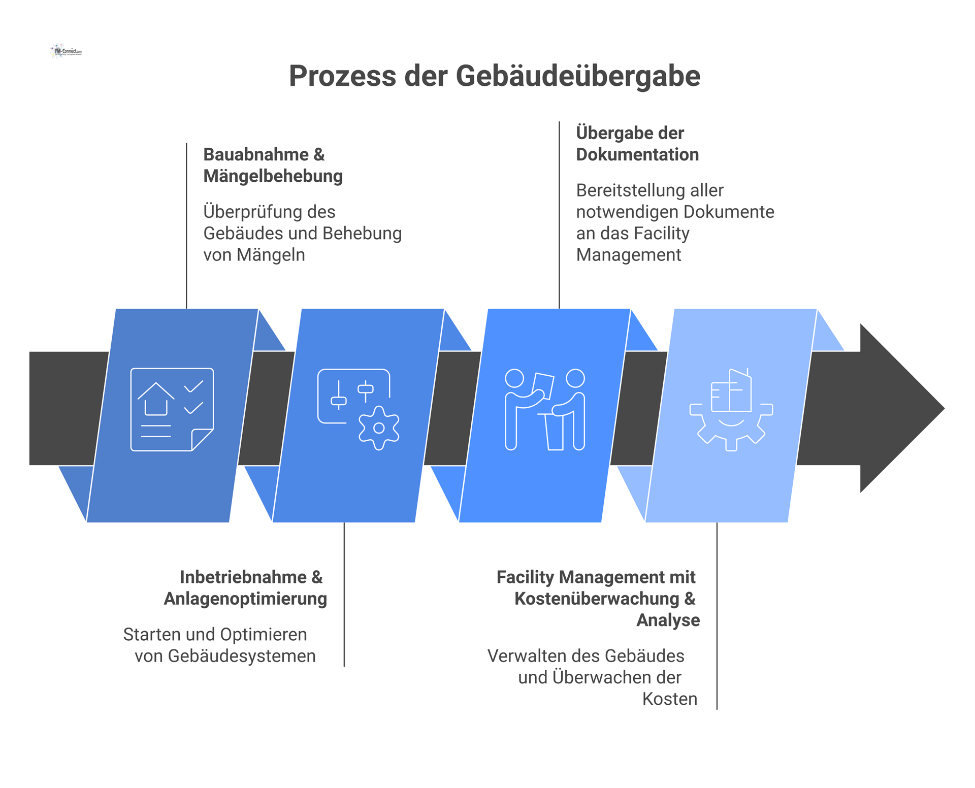 Nach Abschluss der Bauarbeiten erfolgt die Abnahme der Bauleistungen. Hierbei werden alle Arbeiten detailliert überprüft und eventuelle Mängel dokumentiert und behoben. Die Übergabe umfasst die vollständige Inbetriebnahme und Optimierung der technischen Anlagen, um sicherzustellen, dass sie effizient und zuverlässig arbeiten.
