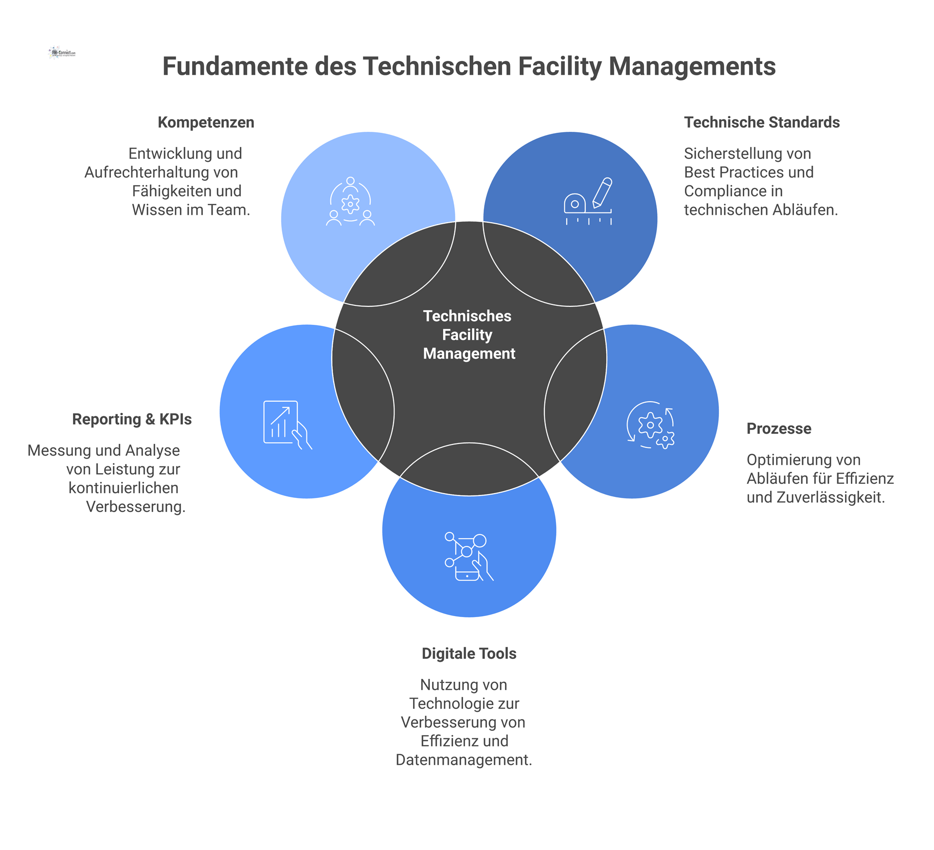 Für die erfolgreiche Modernisierung ist jedoch nicht allein die Technologie entscheidend. Ebenso wichtig sind klare Rollen, belastbare Datenstrukturen, standardisierte Prozesse und qualifizierte Mitarbeiter, die digitale Werkzeuge sicher anwenden und auswerten können. Nur dann entwickelt sich das technische Betriebsmodell von einer reinen Servicefunktion zu einem aktiv gesteuerten, leistungsfähigen Managementsystem.