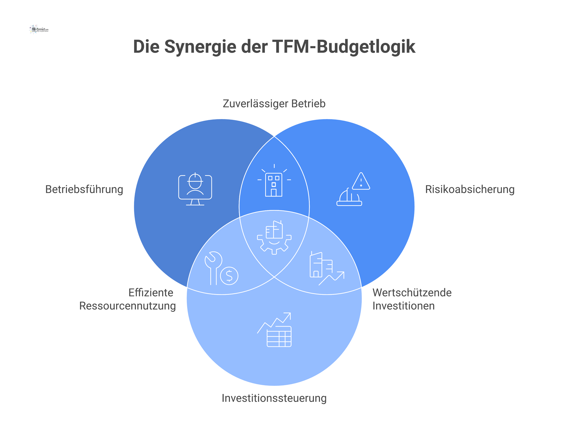 Zusammenfassend lässt sich festhalten: Die Budgetlogik im TFM verbindet operative Erfordernisse, langfristige Investitionen und finanzielle Vorsorge zu einem integrierten Steuerungsmodell. Sie sichert die Servicequalität technischer Systeme, erhöht die Transparenz über Kosten und Risiken und schafft die Voraussetzung für einen wirtschaftlich und nachhaltig gesteuerten Gebäudebetrieb über den gesamten Lebenszyklus.