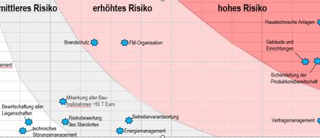 Darstellung der Risiken von Brandschutz bis hin zu Produktionssicherung im Facility Management.