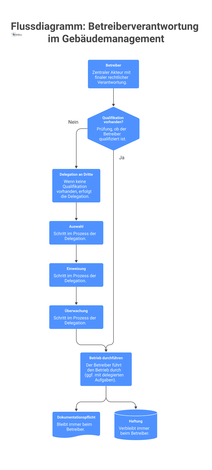 Die Anforderungen an die Qualifikation im Facility Management oder Technischen Gebäudemanagement und für die beauftragten Personen variieren je nach den spezifischen Aufgaben und Aktivitäten. Der Betreiber muss zumindest grundlegende Kenntnisse besitzen, um einen sicheren und vorschriftsmäßigen Betrieb zu gewährleisten, da eine vollständige Übertragung der Verantwortung für den Betrieb von Gebäuden und technischen Anlagen rechtlich unzulässig ist.
