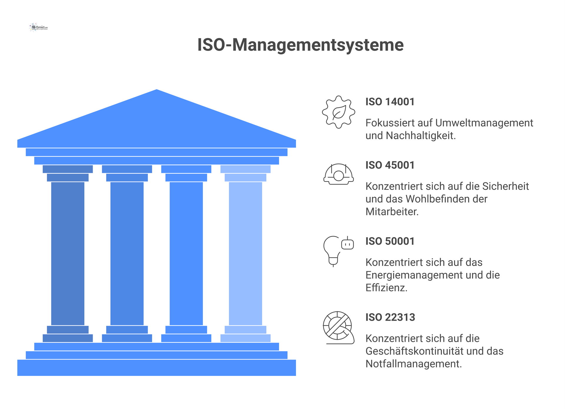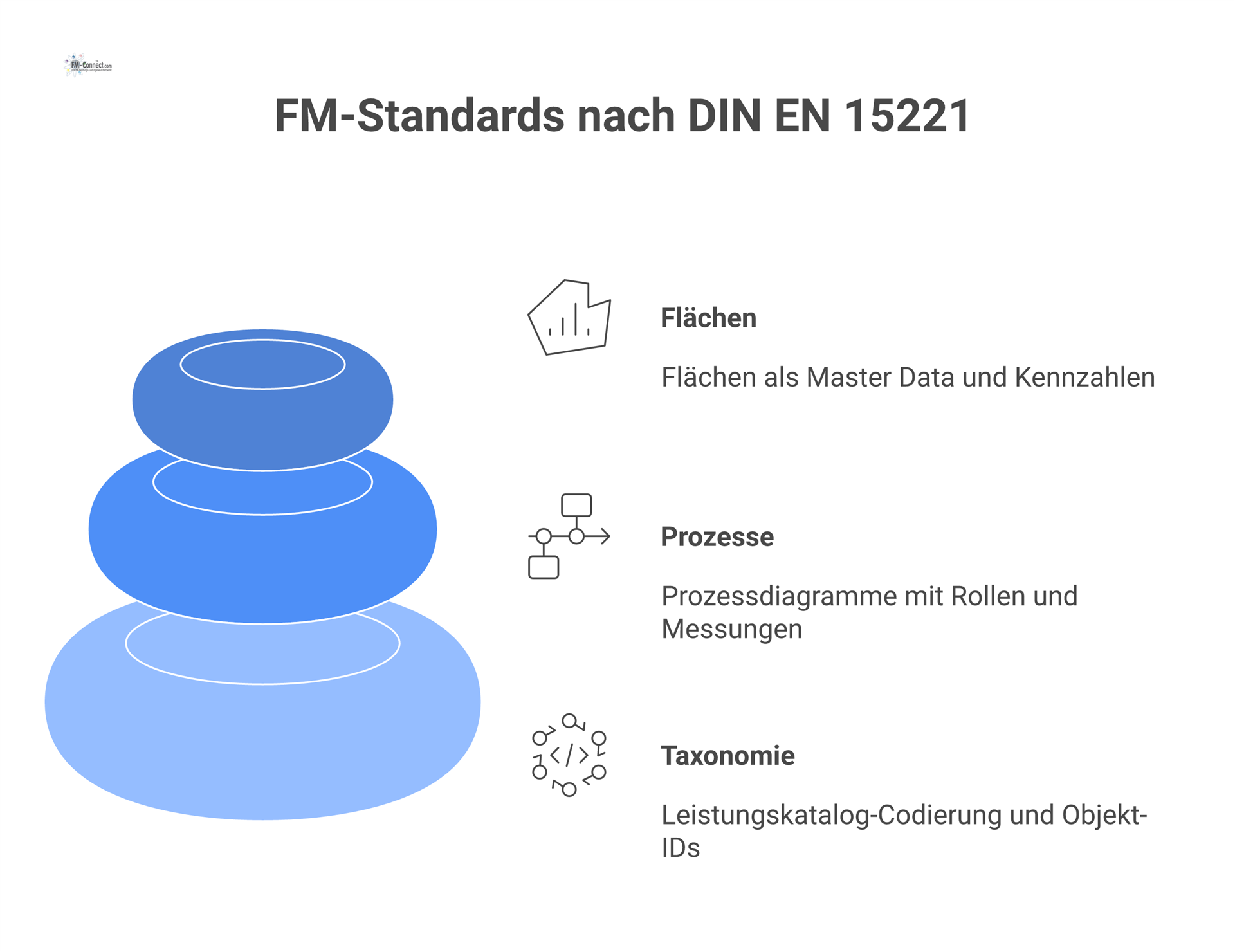 Diese Struktur folgt dem PDCA‑Gedanken, wie er z. B. in ISO‑9001‑Leitdokumenten und der FM‑Taxonomie‑Norm (EN 15221‑4) systematisch angelegt ist.