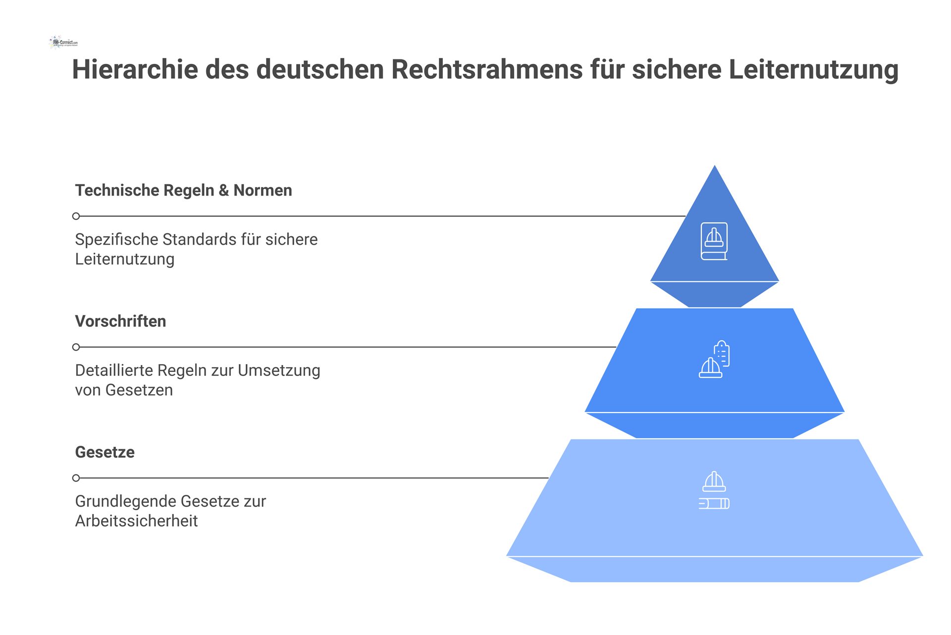 Sonstiges: VDI 2700 (Verkehrssicherung) und DIN EN 131 (Leitern), sowie BGI/GUV-I Regel (BGHM) sind anerkannte Regeln, deren Inhalte hier als Maßstab gelten. Wichtig: Leitern sind Arbeitsmittel und müssen den „anerkannten Regeln der Technik“ entsprechen, wie es BetrSichV und TRBS fordern.