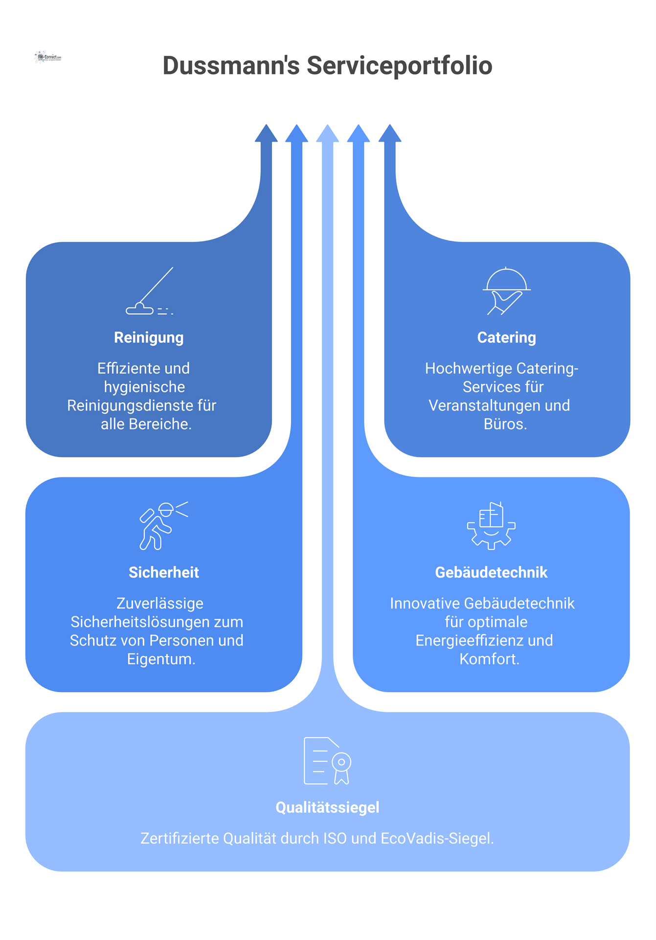 Spezialisierungen: Dussmann hat ausgeprägte Kompetenz im Gesundheits- und Pflegewesen: Das Unternehmen ist Marktführer bei Klinik-Dienstleistungen (Speisenversorgung für Patienten, Klinikreinigung, Bettenaufbereitung) und betreibt über die Tochter Kursana auch eigene Pflegeeinrichtungen. Krankenhäuser und Seniorenheime vertrauen auf Dussmanns Erfahrung in Hygiene und patientennaher Servicequalität. Ein weiterer Schwerpunkt sind Bildungs- und Betreuungseinrichtungen – Dussmann bewirtschaftet etwa Schulen (Catering für Ganztagsbetreuung) oder Kindergärten (Verpflegung über Dussmann KulturKindergarten). Im Unternehmens- und Behördensektor erbringt Dussmann integrierte FM-Leistungen für Bürokomplexe, Ministerien und Forschungseinrichtungen. Auch Industrieunternehmen zählen zu den Kunden, wo Dussmann etwa Werkrestaurants führt, Fabriken reinigt oder die Wartung von gebäudetechnischen Anlagen übernimmt. Mit der Sparte Dussmann Technical Solutions hat sich das Unternehmen zudem bei Technischem Ausbau und Spezialgewerken einen Namen gemacht – so werden etwa sicherheitskritische Anlagen (Brandmelder, Zutrittssysteme) betreut oder komplexe Energieanlagen optimiert. Generell punktet Dussmann bei Großobjekten und Portfolios, die vielfältige Services erfordern: Beispielsweise kann ein Krankenhaus gleichzeitig das Catering, die Reinigung und die Medizintechnik-Wartung an Dussmann übertragen. Diese Multiservice-Kompetenz ist eine Kernstärke des Anbieters.